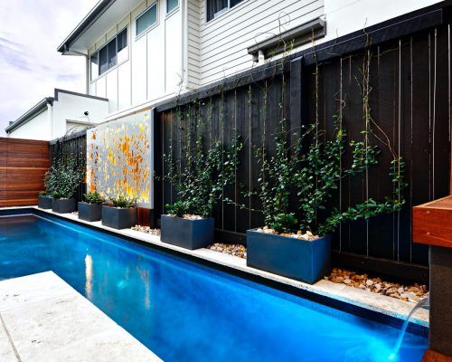 A swimming pool and landscape solution designed and constructed to increase rental yield for a holiday let beachside investment property at the foot of Mount Coolum.