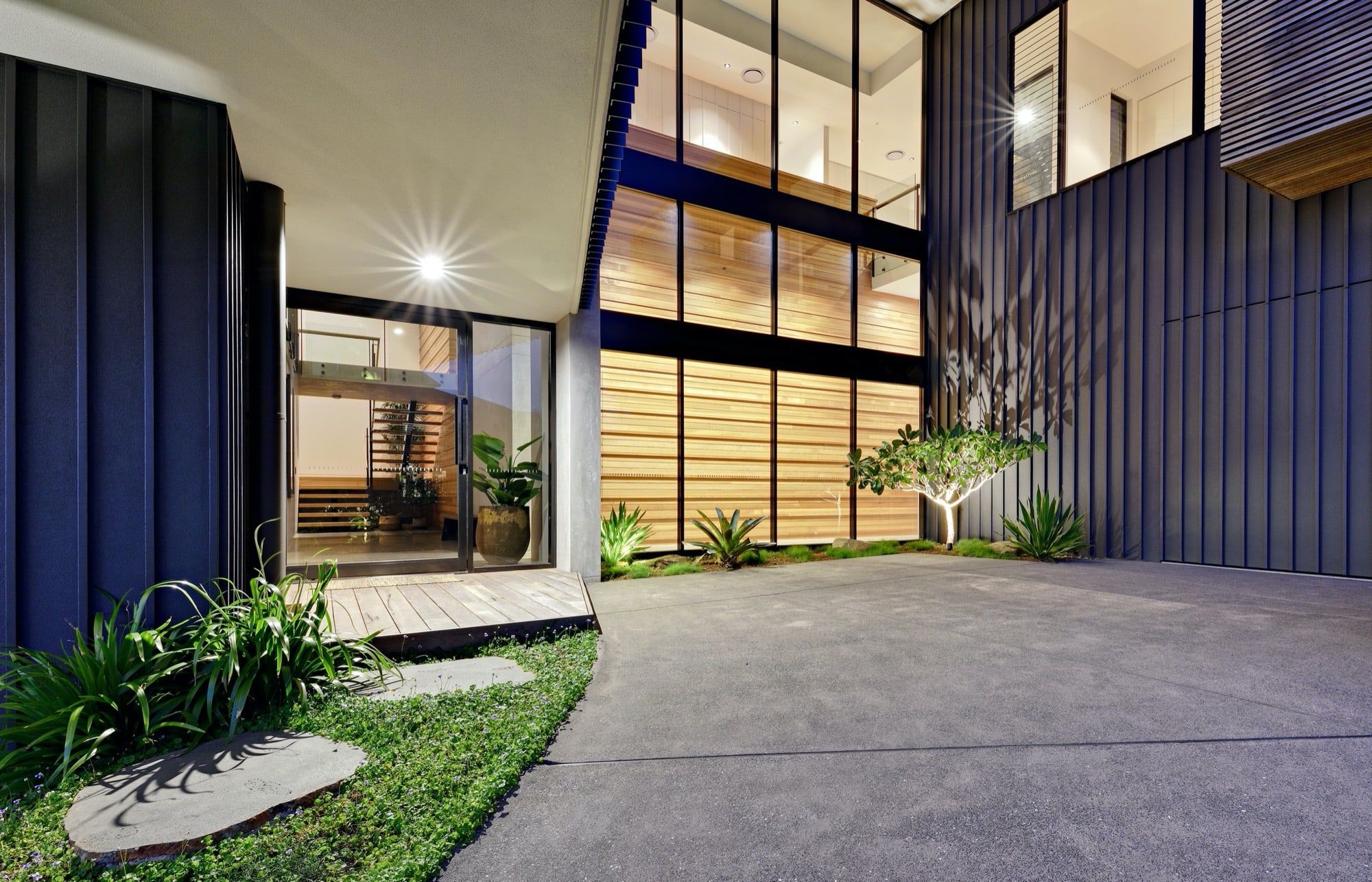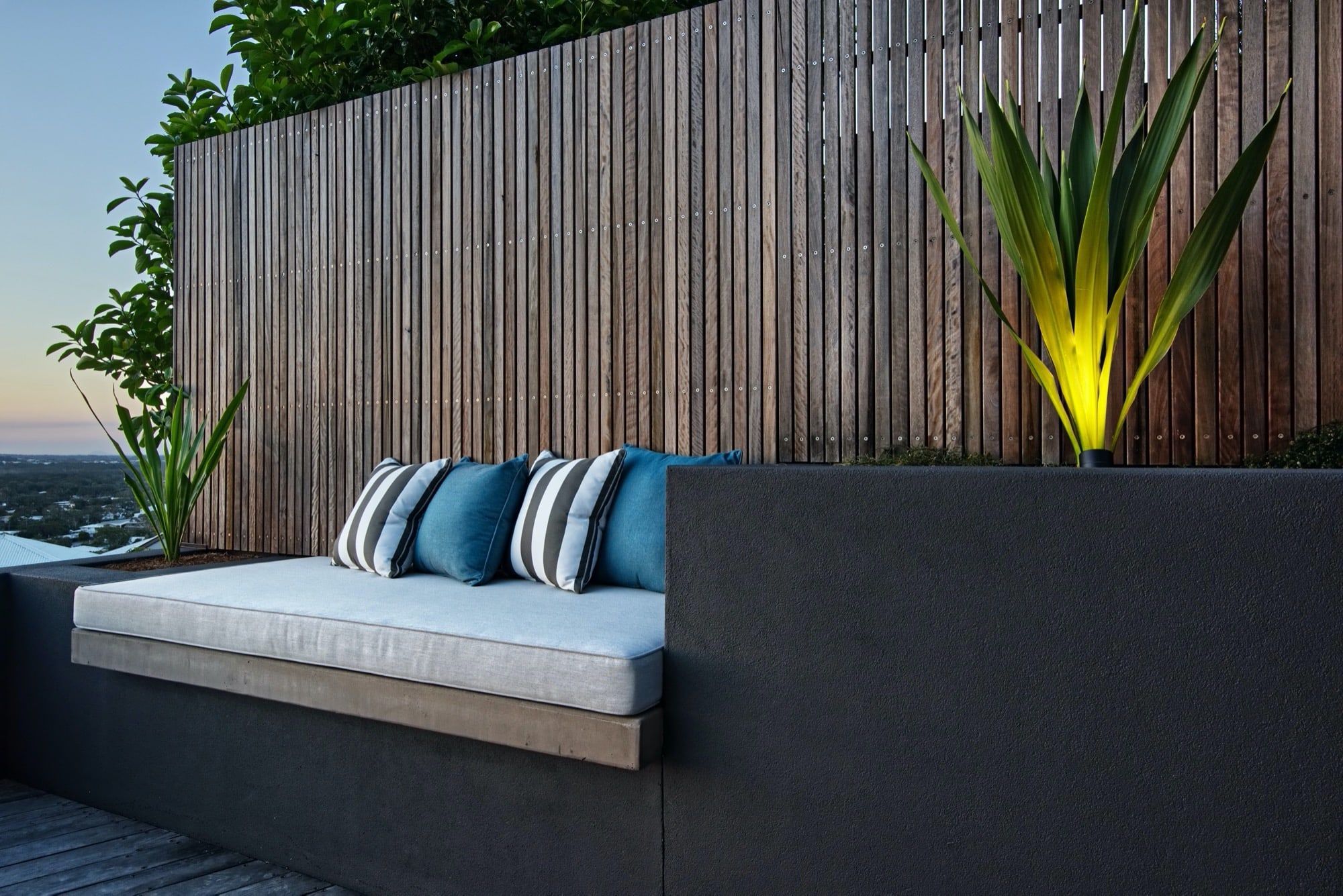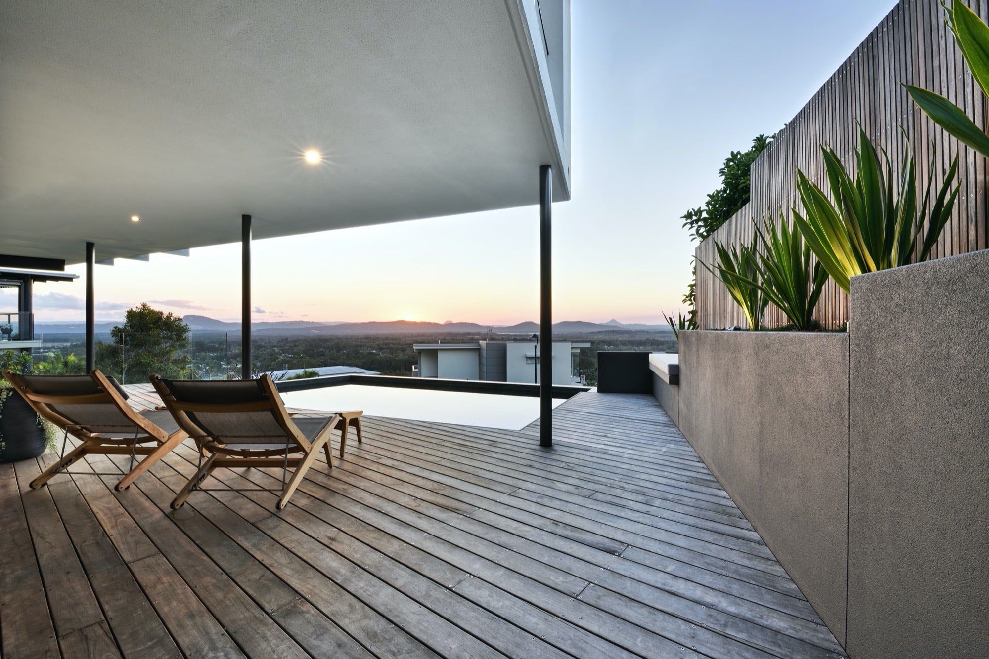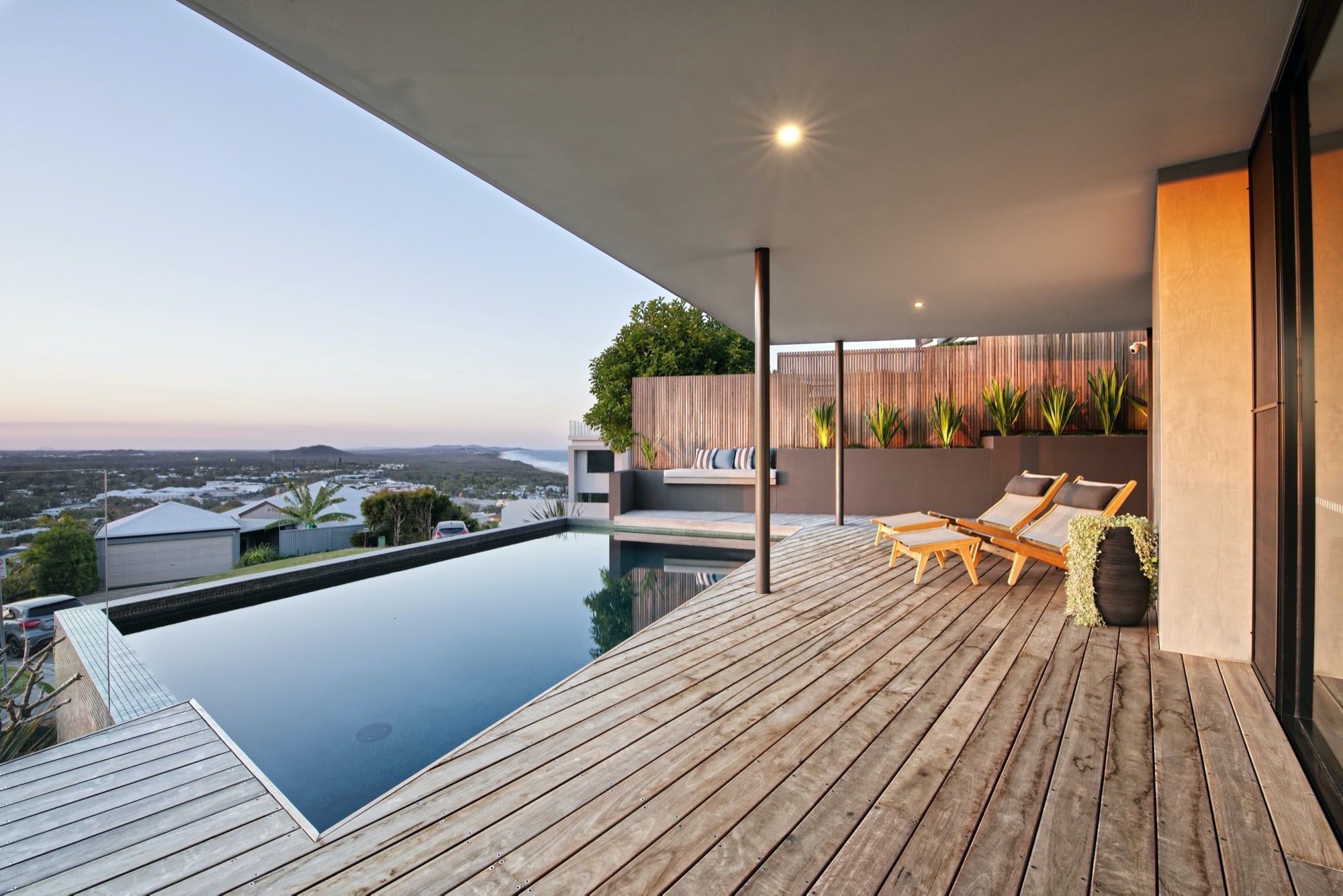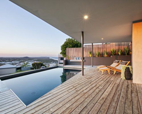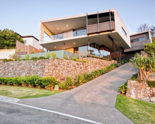 Working with both the designer and also the builder on this project we were able to create outdoor livable areas which were both functional and also utilising the amazing outlook and views across the coast .