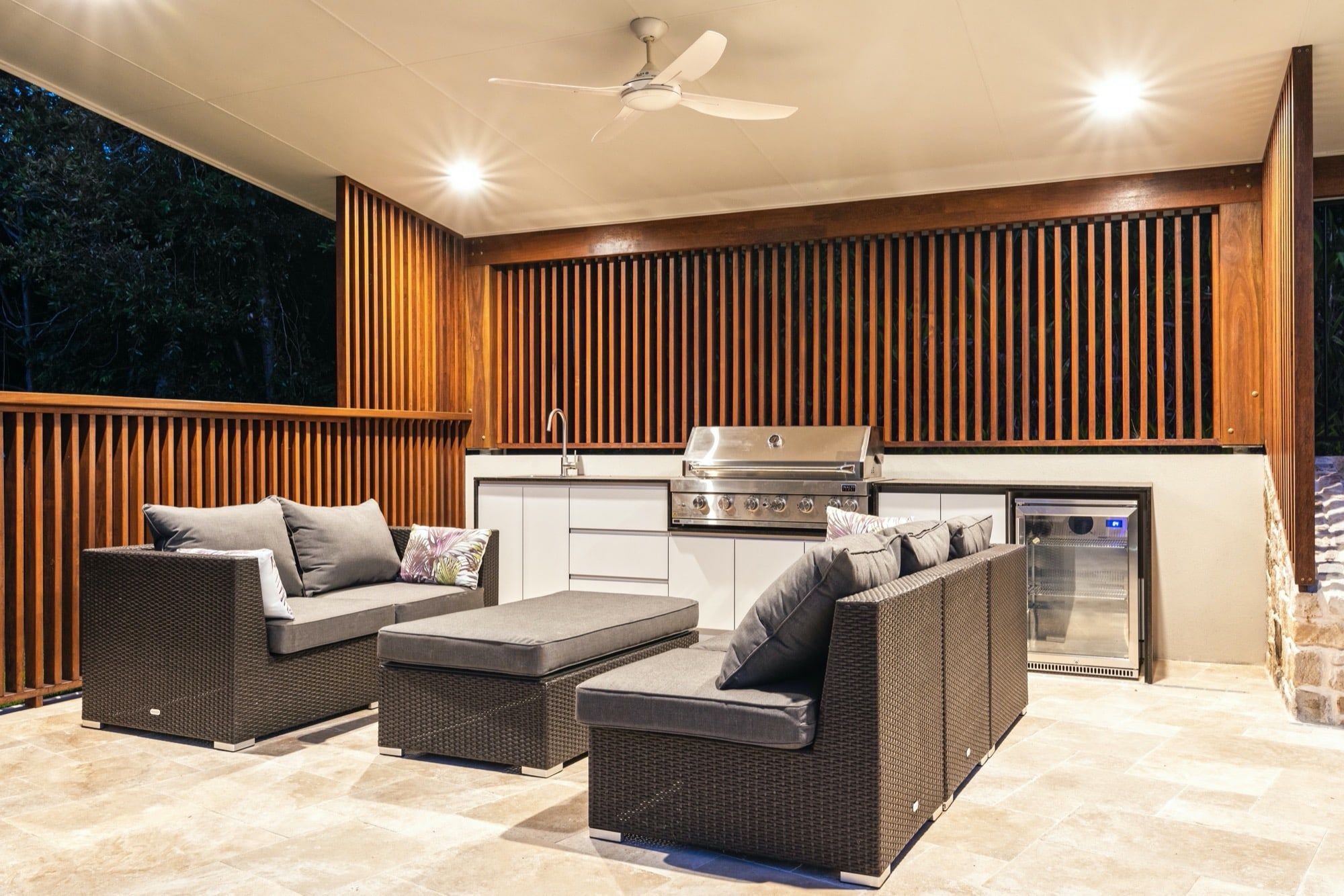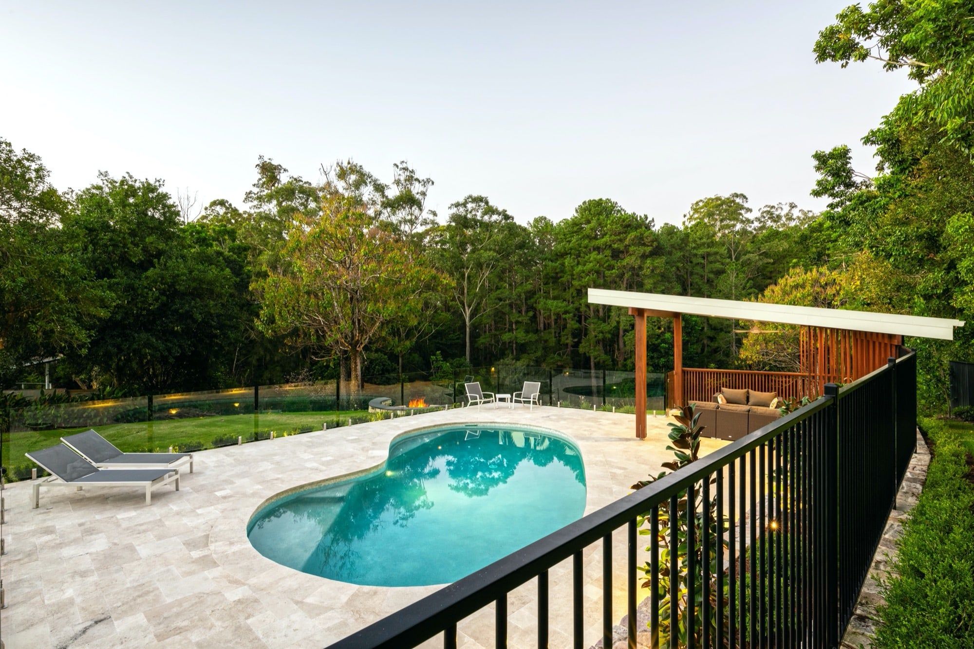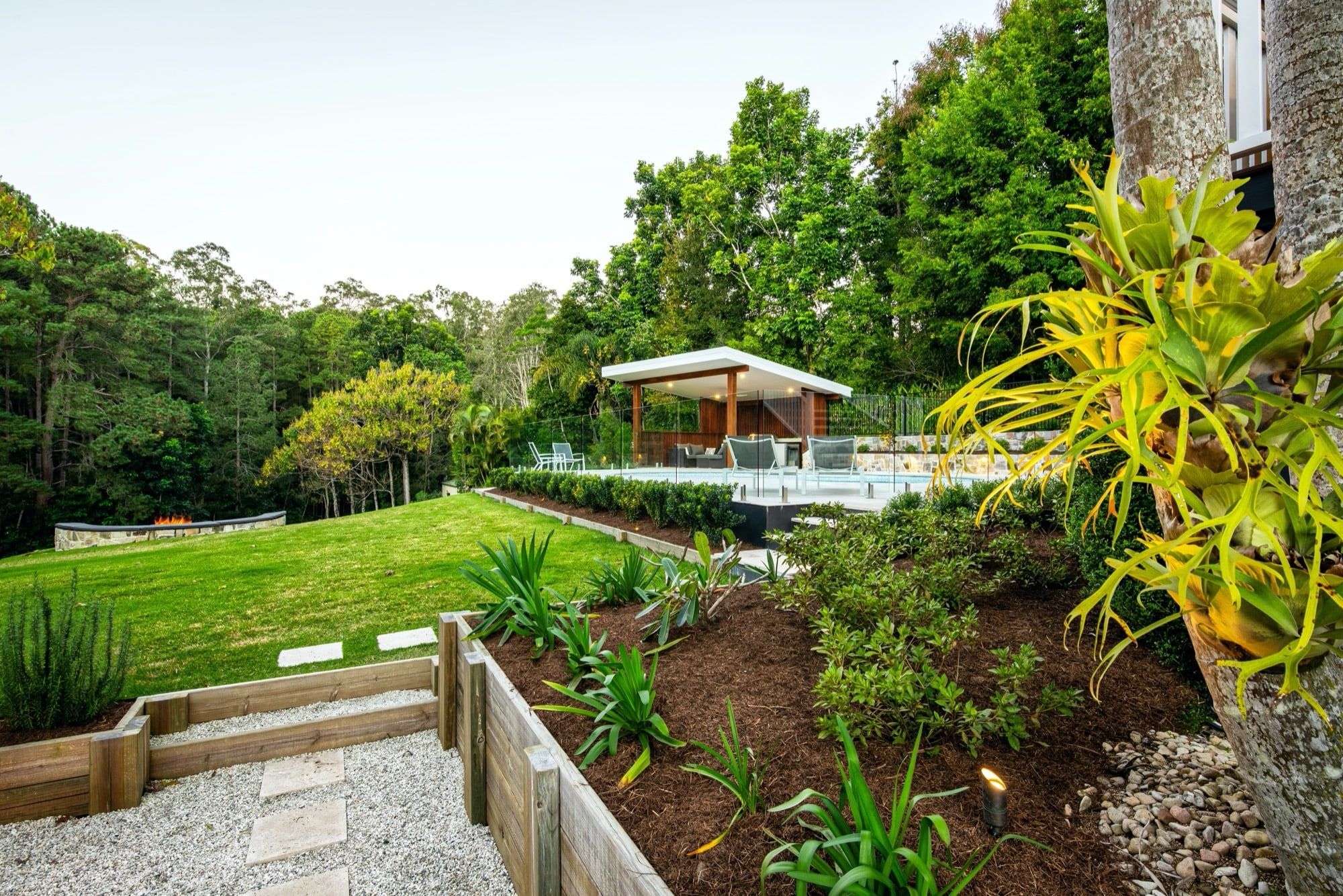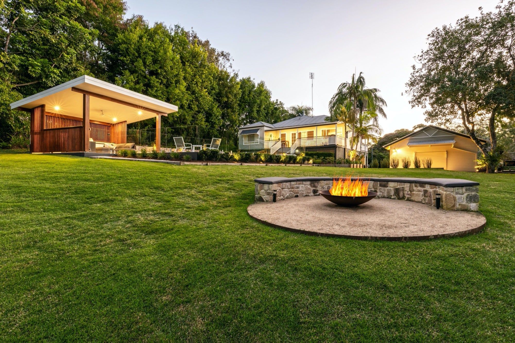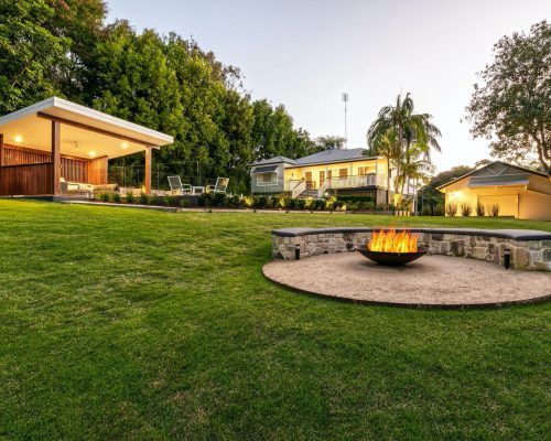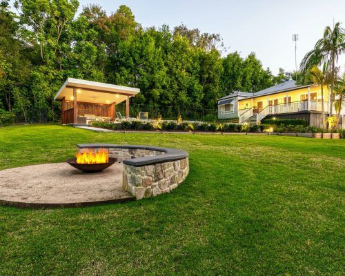 As a family who love entertaining a firepit area was designed with a curved half circle stone bench seat to sit and take in the lovely bush aspect.