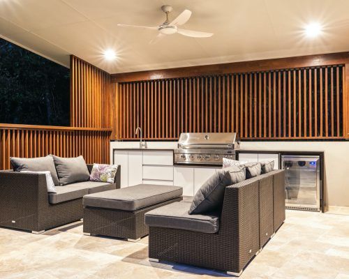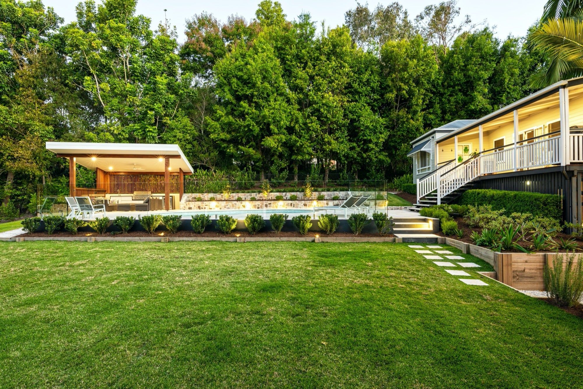 A must for this new area was a pavilion with an outdoor kitchen. Careful consideration was needed for the location of this to keep within the boundary requirements. Future planning for home extensions also had an impact on the design of the new area.