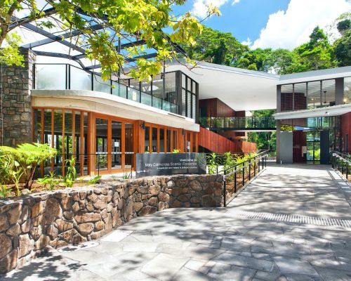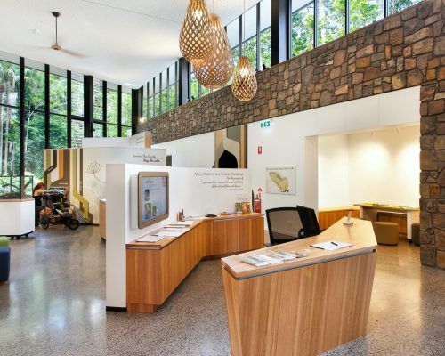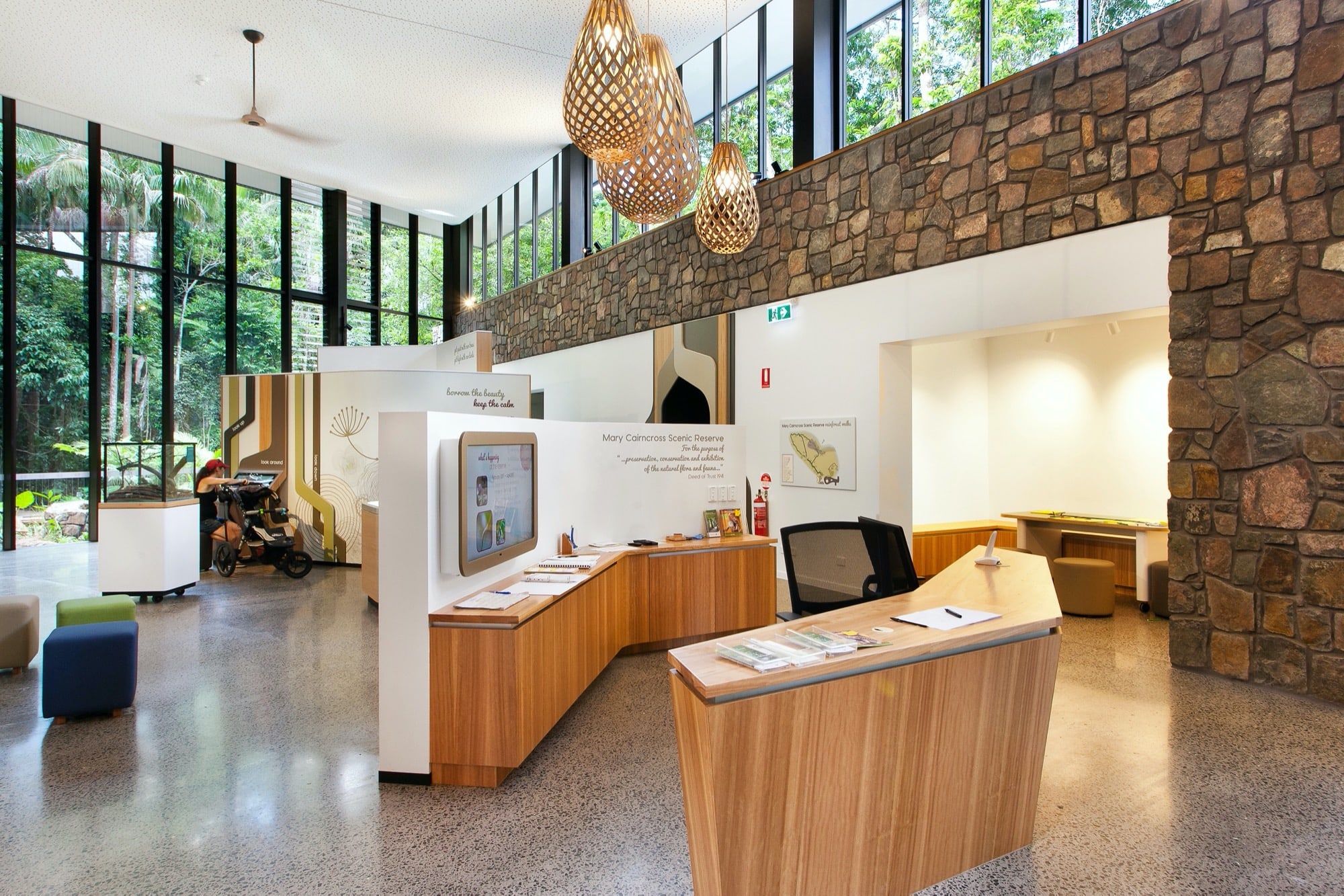 The Mary Cairncross Scenic Reserve Rainforest Discovery Centre is nestled on the Reserve’s subtropical rainforest and overlooks the exceptional Glasshouse Mountain views. The brief for this project was very specific while in keeping with the natural surrounds of the environment and the site’s indigenous history.