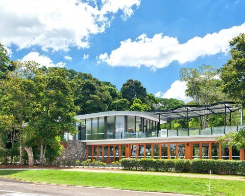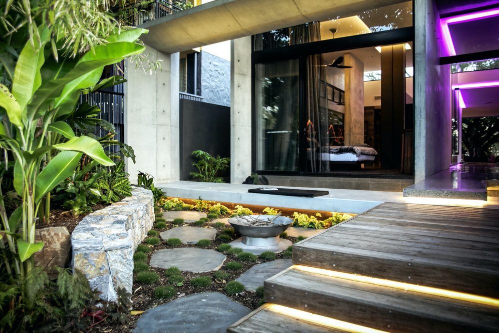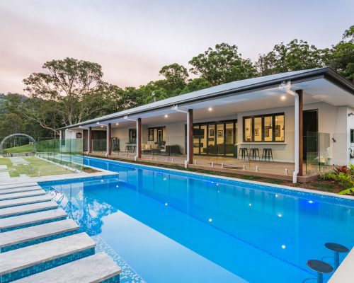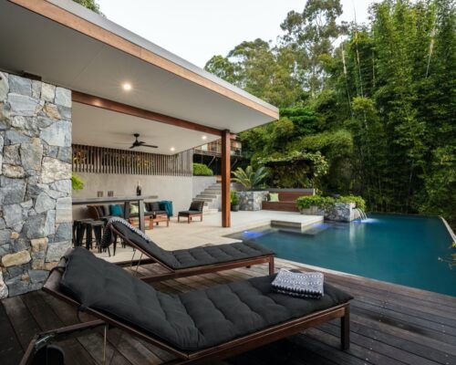 This architecturally designed home on the Mooloolah river was landscaped to resemble the clients lush tropical retreat in the daintree.