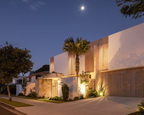 Planting was designed to screen off the busy road and create a beautiful backdrop as you enter and leave the home . Using the existing twenty year old Cupaniasis , enough shelter from wind and filtered light gave the opportunity to use tropical lush plants not normally seen only 100m away from the beach .