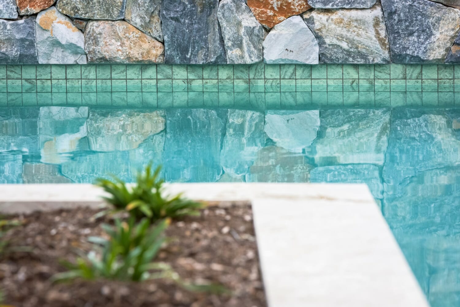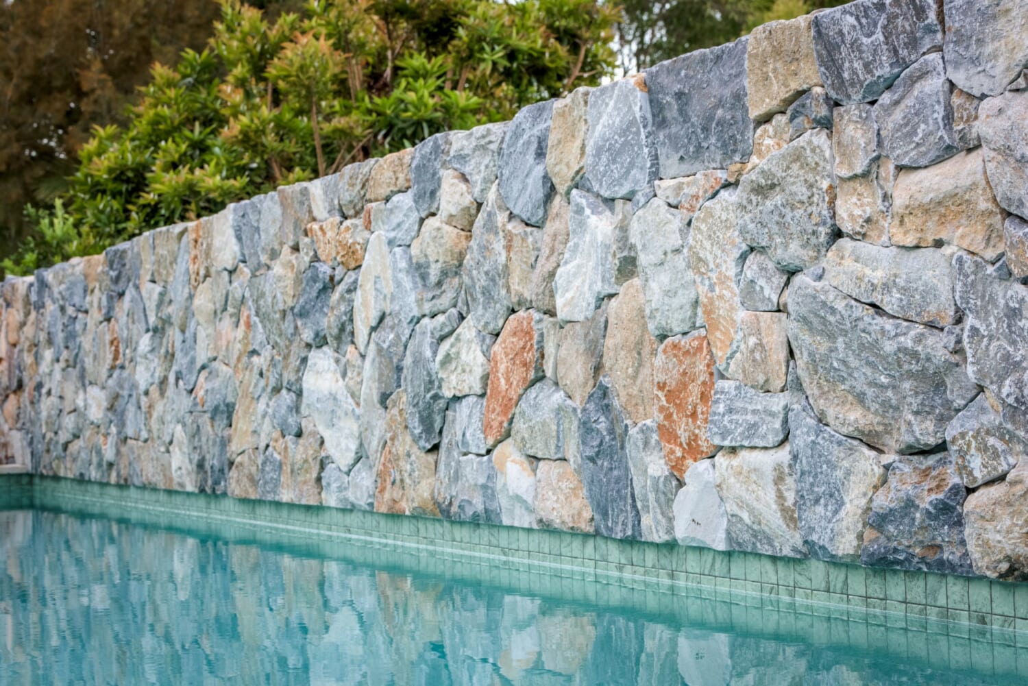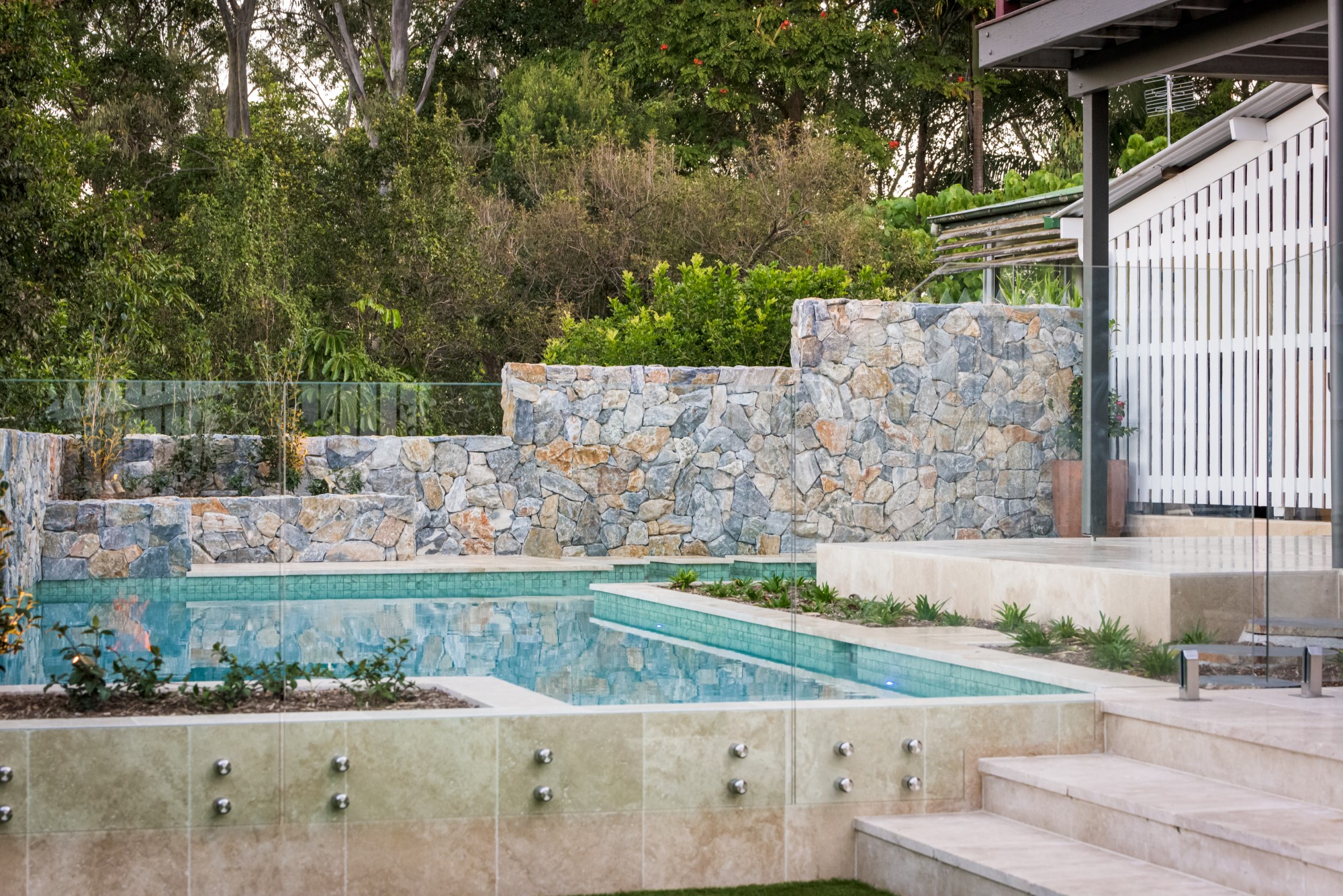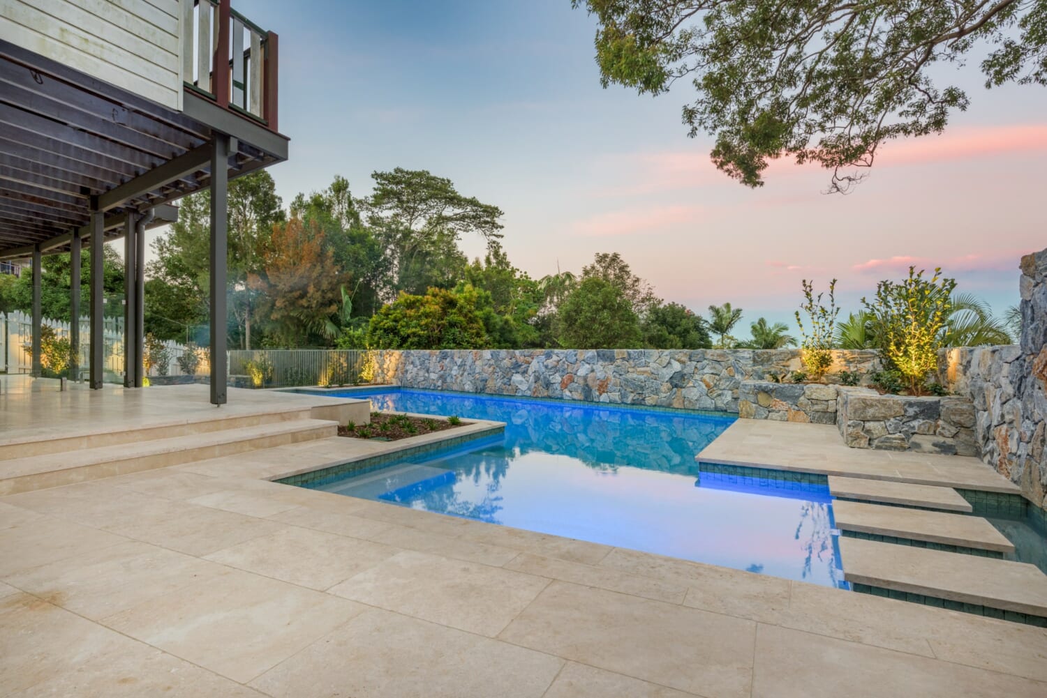 home where the use of wamberal stone cladding on block walls surrounding the pool added a