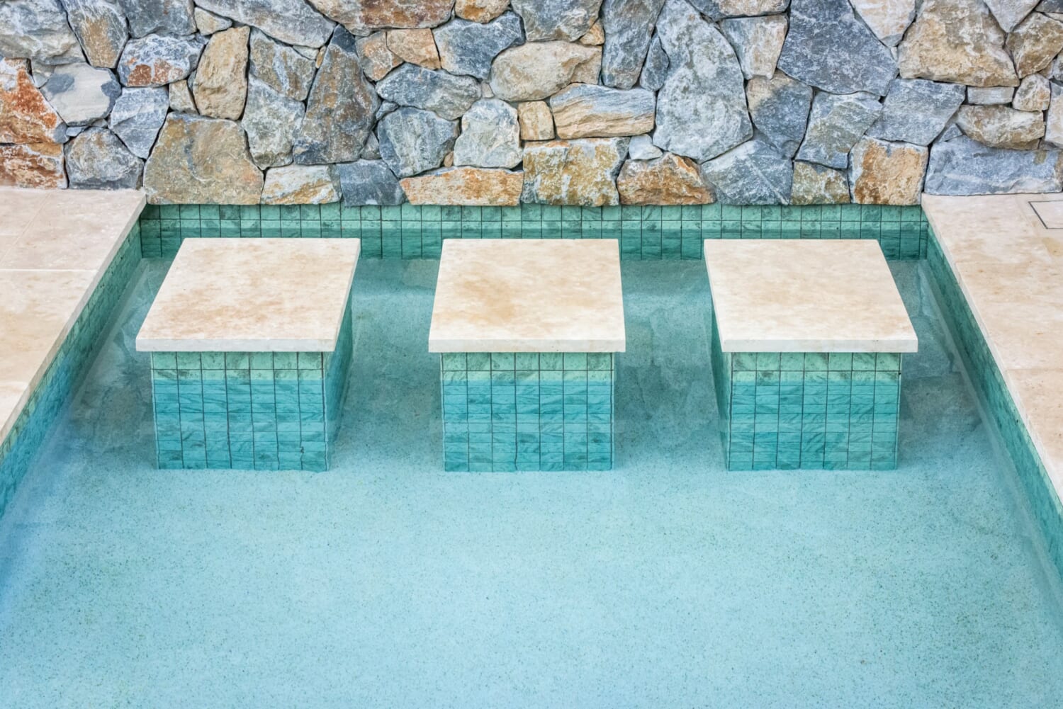 feature Stone work was also constructed on the entire boundary wall of the pool shell.The pool